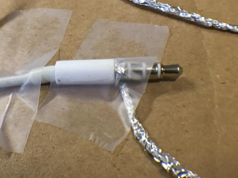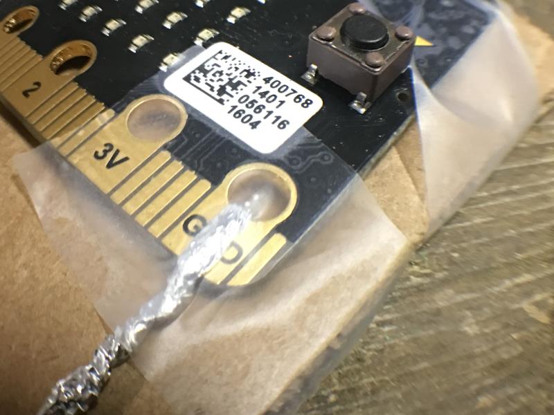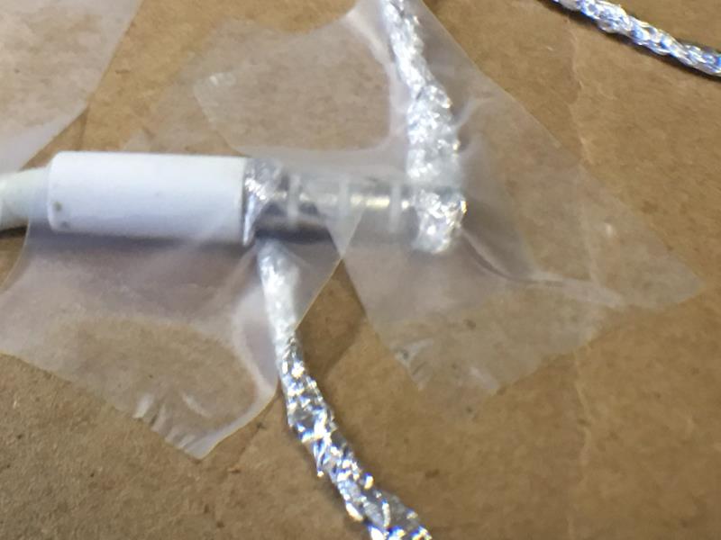 Place the foil wire on the GND pin and attach with a piece of tape. Press hard to get the best connection between