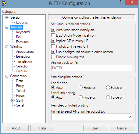If you prefer another terminal emulator (such as PuTTY), here are some instructions.