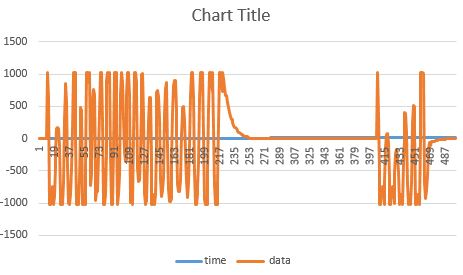 3. After vigarously moving the micro:bit from side to side along the “x” axis for a sufficient amount of time,insert the Excel graph for displaying a line chart used to display trends over time.
