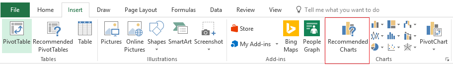 Click or tap on Insert then select Recommended Charts. We can select a chart that’s just right for the data.