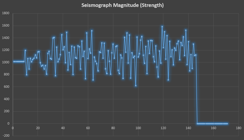 Second, the horizontal line will move to plot the value of the strength as measured in milli-gravities. The horizontal line’s movement is based on the micro:bit acceleration in Magnitude or Strength.