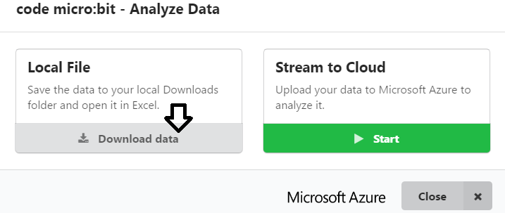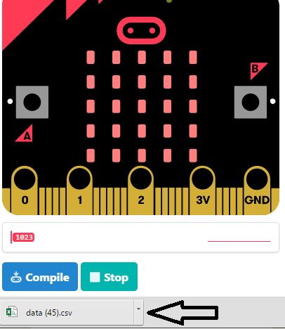 A CSV file will be generated to display the data points collected by the micro:bit. Click or tap on the data Excel file that was downloaded to your local Downloads Folder.