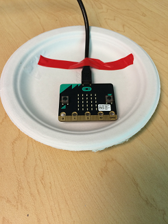 Fasten Tape: Fasten tape to the micro USB cable and to the plate. Attach the micro:bit to the micro:bit USB cable.