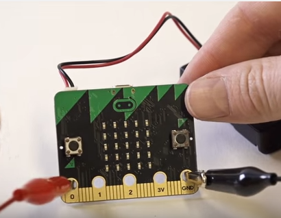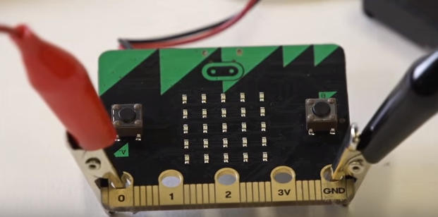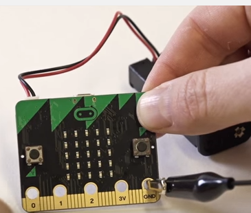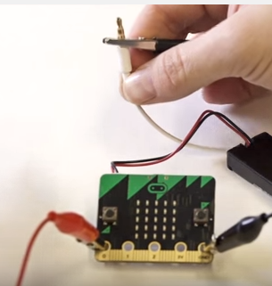 Using the 2nd crocodile clip, connect the end of the crocodile clip onto the 0 pin on the micro:bit.