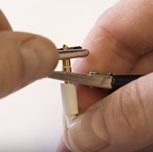 Using the 1st crocodile clip, connect the second end of the crocodile clip onto based of the headphone jack. The base of your headphone jack is considered the ground so it is connected to the GND of the micro:bit.