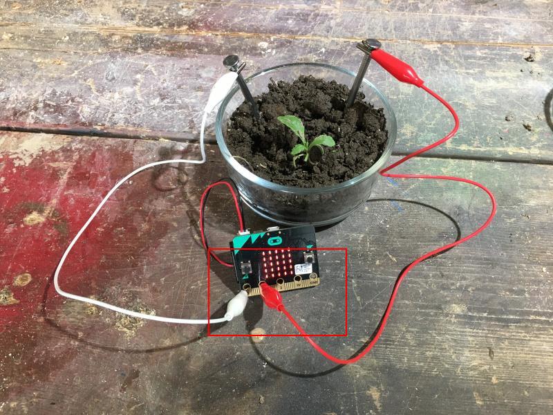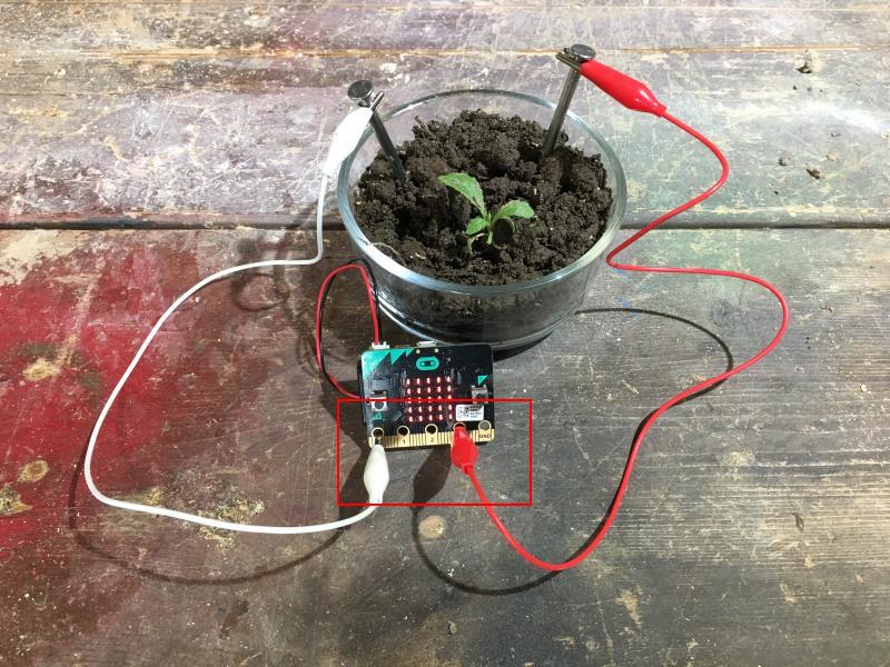 You will code your moisture meter using a pot of dry dirt and wet dirt. This is so you can set the micro:bit to know what both dry and wet conditions are.