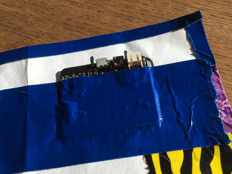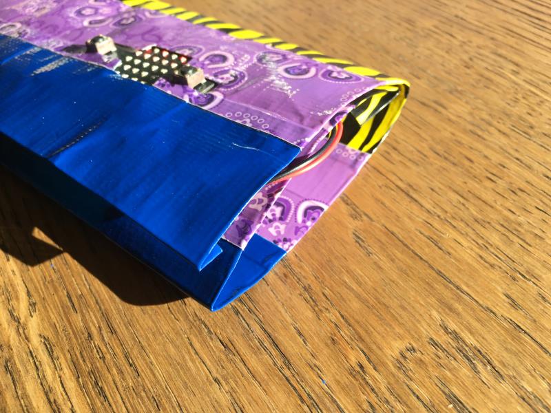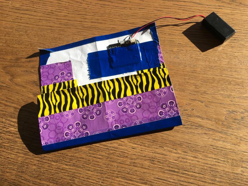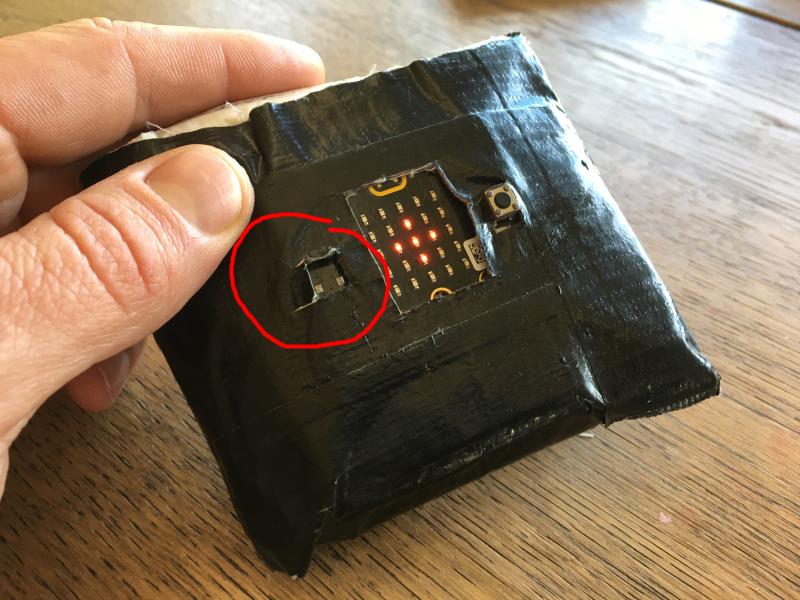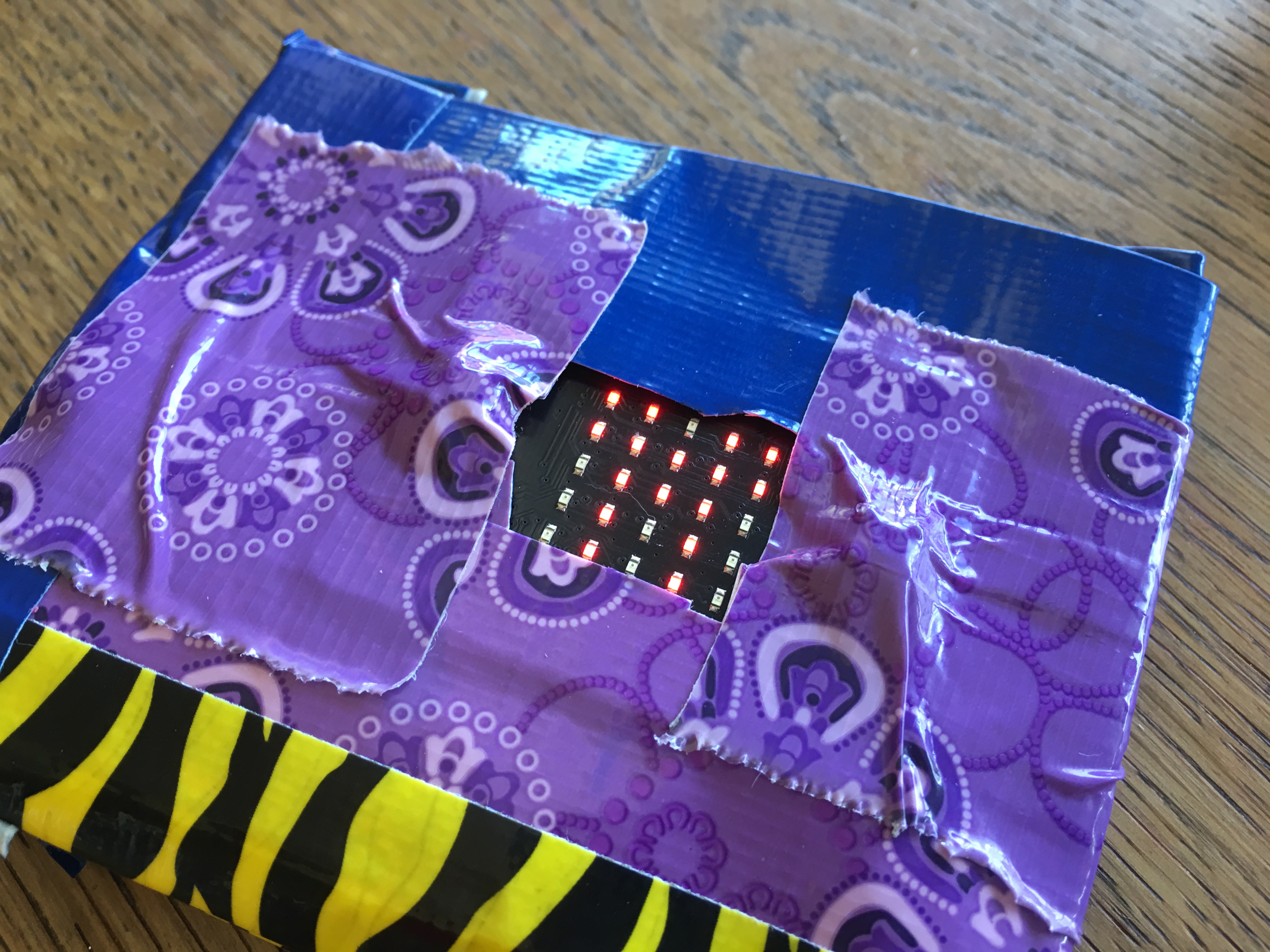 Put a generous layer of tape on the back of the micro:bit to stick it on the wallet.