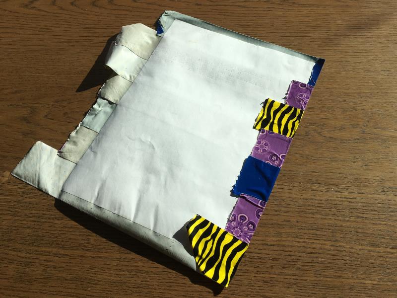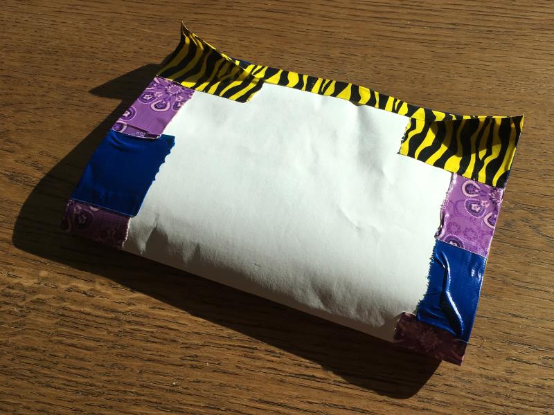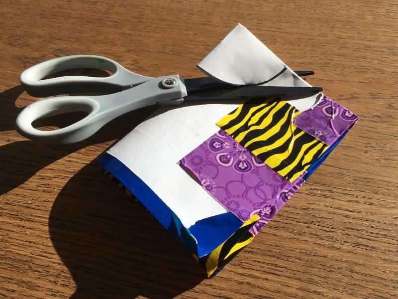 Fold the remaining tape over the wallet and cut the sides with the scissors.