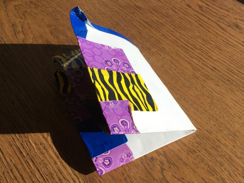 The last step is to fold the sheet and tape the sides to get a wallet.