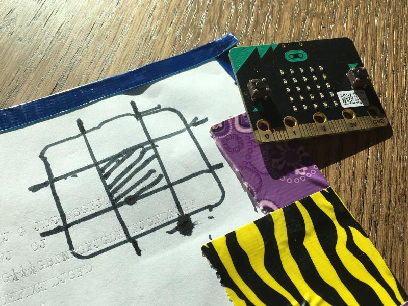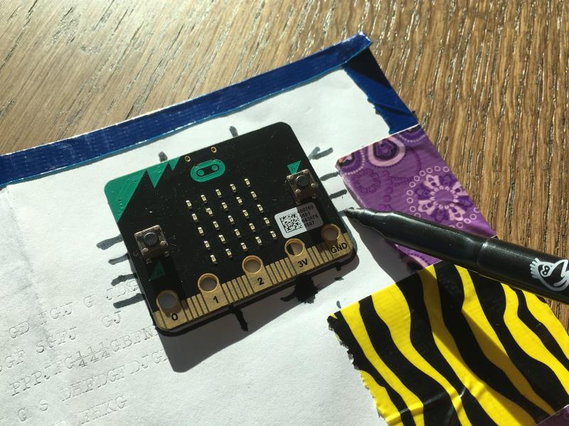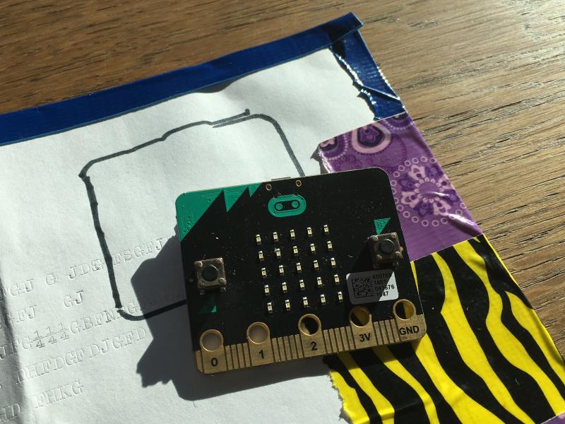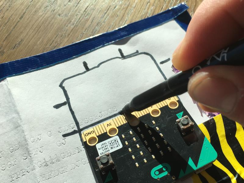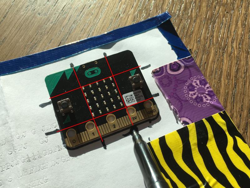 Mark the contour of the micro:bit on the sheet with your marker. Don’t worry about little mistakes.