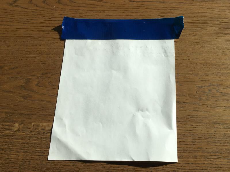 Position the paper sheet on the workbench and place lines of tape over it. Make sure to overlap each layer to avoid seeing gaps of papers. In case of mistake, add tape!