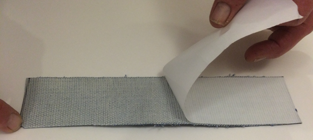 Stretch the cloth using your hands and apply the double-side tape on the rectangle marked on the jeans. You might need the help of a friend to achieve this step. Don’t worry if the tape is larger than the rectangle, we will trim it later. Make sure to apply pressure to the tape to secure it firmly.