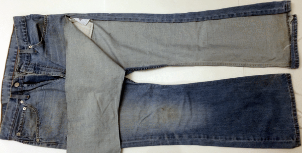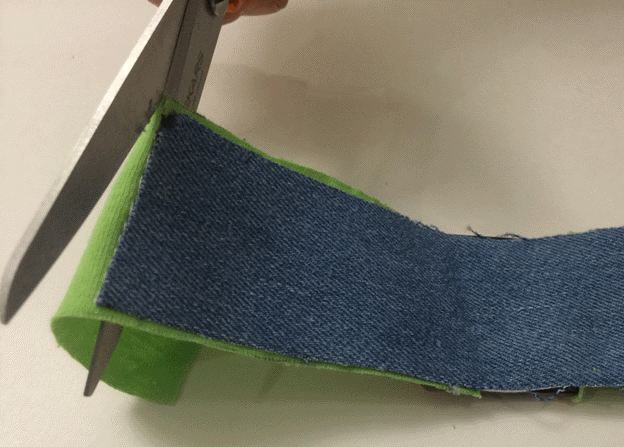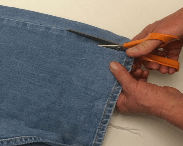 Cut a piece of cloth from the pair of jeans. Cut straight by the seam.