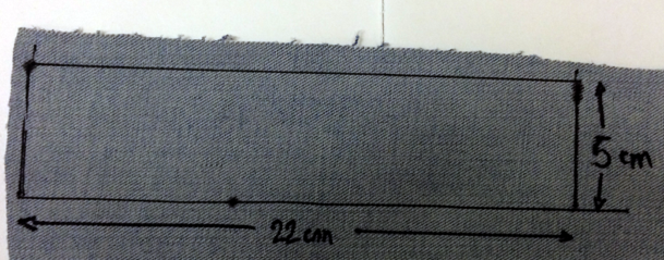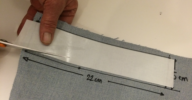 Using the ruler and pen, mark a rectangle of 22cm x 5cm (adults should use 24cm x 5cm) on the jeans cloth.